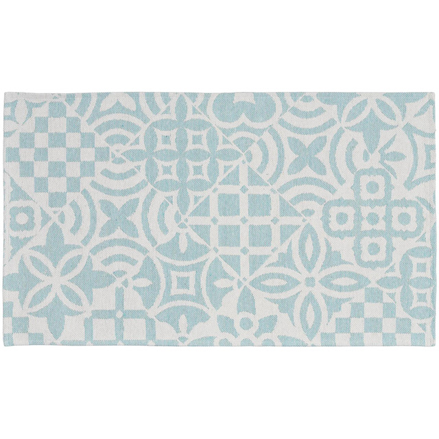 This accent rug features a flatweave design with a geometric print and non-skid backing. It adds warmth and modern charm to any room, creating a welcoming touch for everyday living. Fabrication is 45% polyester, 33% cotton, 19% rayon, and 3% other.