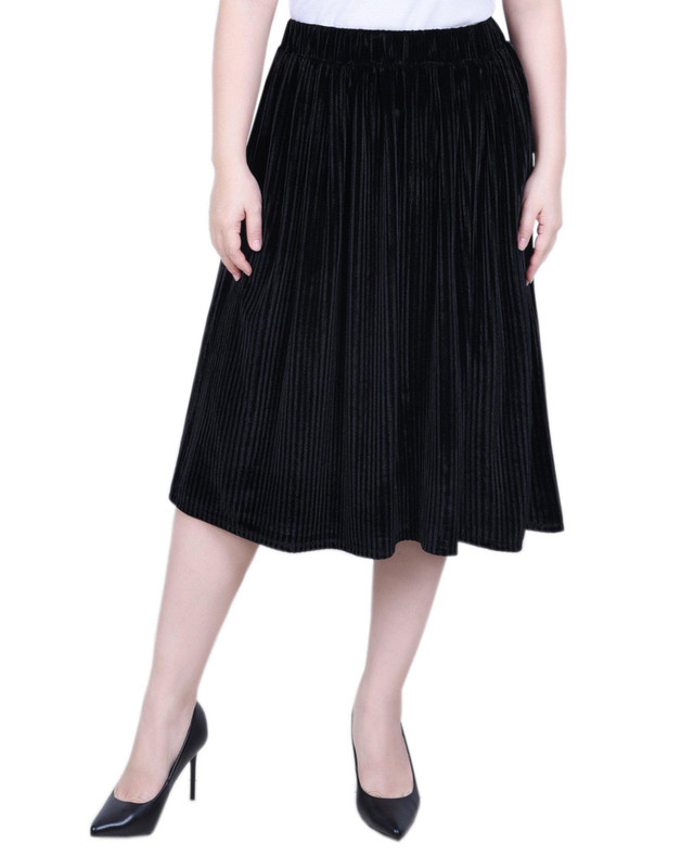 Get ready for the holidays with this Petite A-line velvet skirt from NY Collection. With it's pull on styling, you'll can look great while still being comfortable.