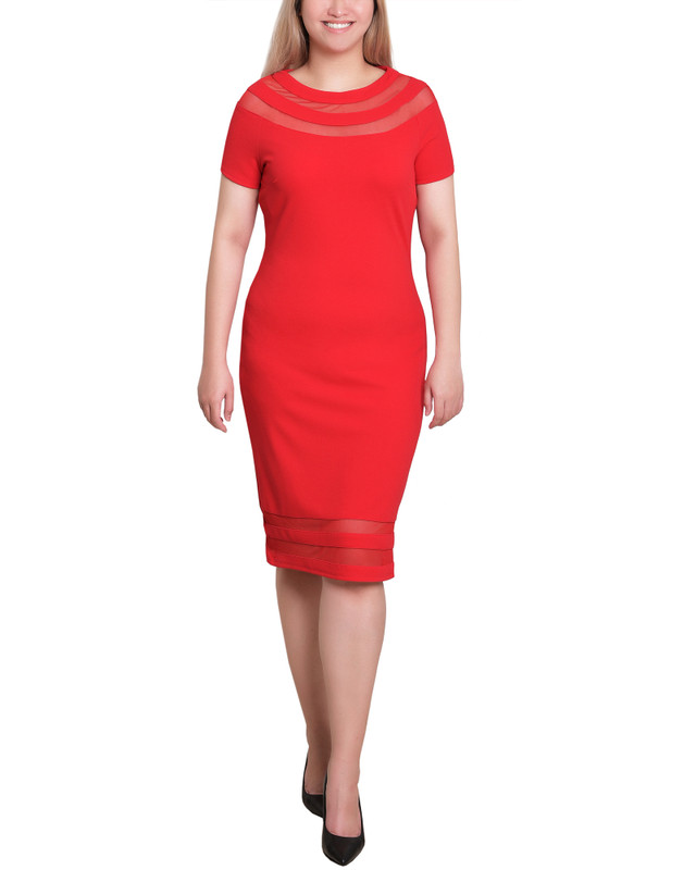 Ny CollectionNY Collection Petite Solid Mesh Insert Dress