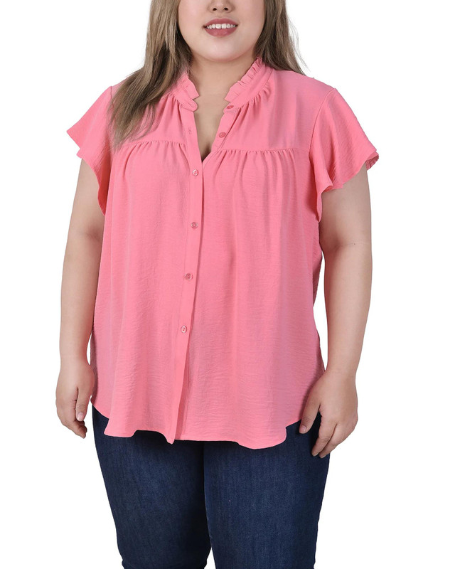 NY Collection Plus Flutter Sleeve Ruffle Neck Blouse
