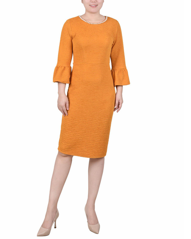 NY Collection Womens 3/4 Length Pearl Detail Dress