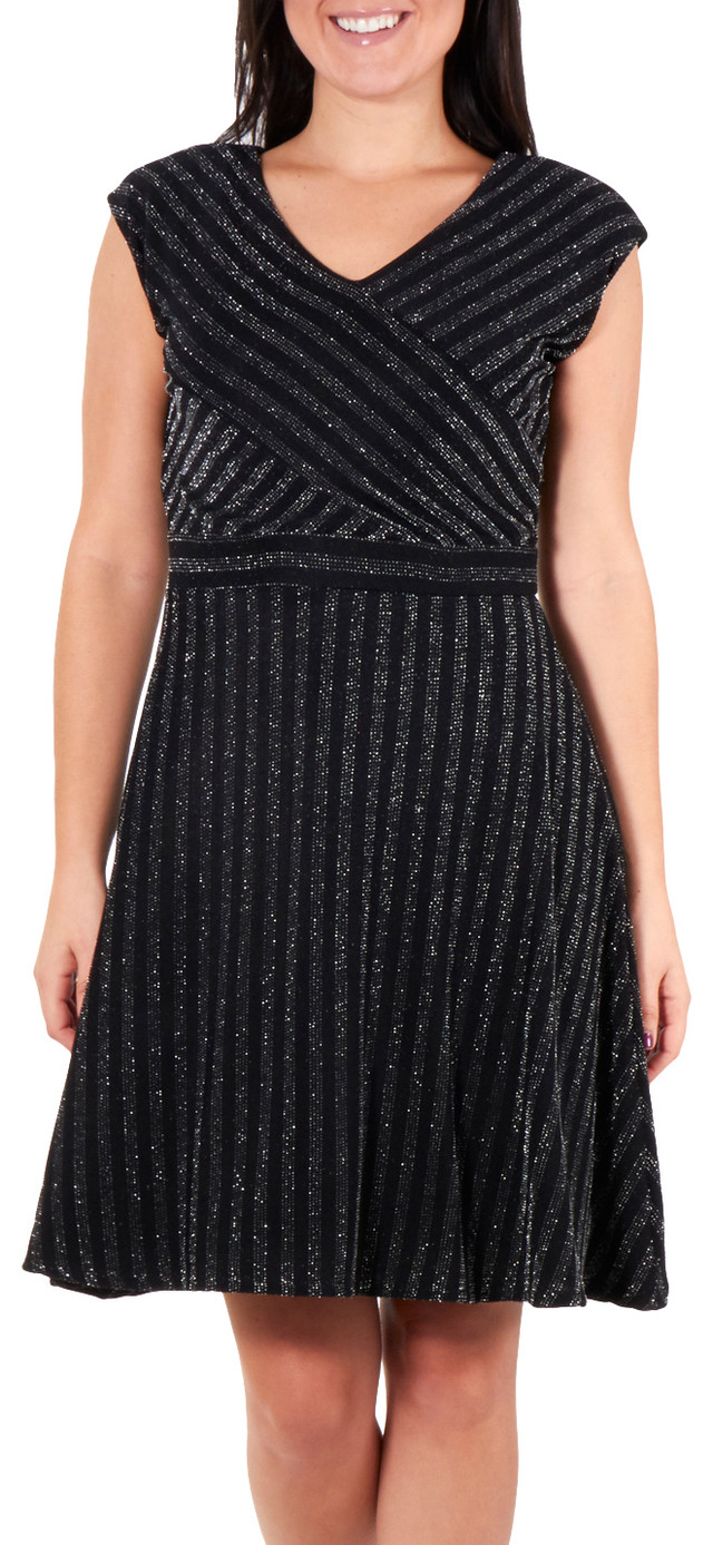 NY Collection brings a comfortable and stylish look to your wardrobe. A glittery finish highlights the flirty fit and flare silhouette of this sleeveless dress and will surely be a Saturday night showstopper. Length is approximately 37 inches from size medium.