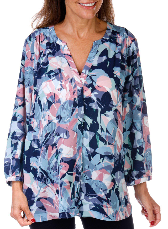 Freshen up your look with this long sleeve top, featuring a striking print and a classic buttoned front placket. Made from recycled polyester, it offers both style and sustainability for your everyday wardrobe. Fabrication is 100% recycled polyester.