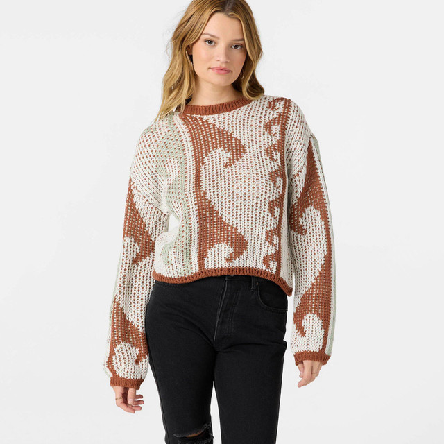 Wrap yourself in cozy comfort with this skimmer length sweater. Featuring custom artwork, drop shoulders and soft acrylic yarn feel. Features drop shoulders, rib cuffs, hem and neckband. 100% acrylic yarns.