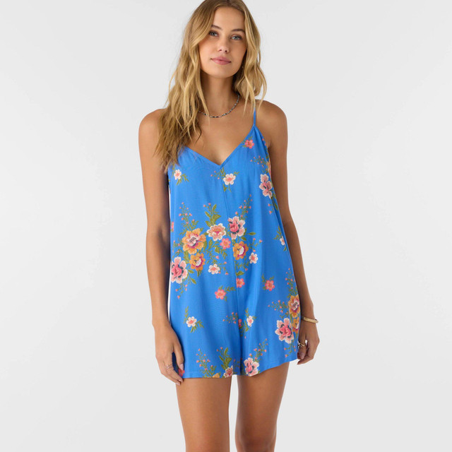 A charming viscose romper that features a flattering V-neck and convenient adjustable straps. The playful allover print and comfortable fit make this piece a perfect choice for sunny days and warm evenings alike. Measures: 2 3/4 in. inseam; 21 3/4 in. rise length.