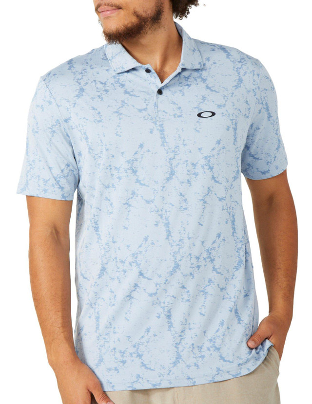 This mens golf polo features a marble jacquard texture with short sleeves and a classic polo neckline. Designed with moisture wicking and performance stretch fabric, it keeps you cool and comfortable while allowing full range of motion on or off the course. Fabrication 93% polyester, 7% elastane.