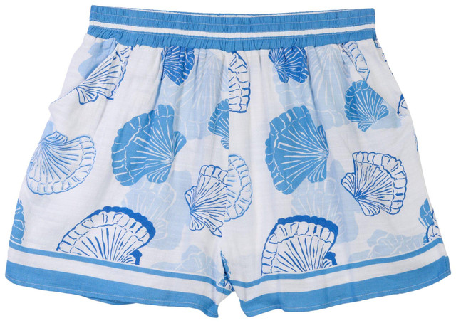 Bring beachy vibes to your look with the Juniors Seashell Shorts. Featuring a playful seashell print, comfy elastic waistband, side seam pockets, and a 3-inch inseam, these shorts are perfect for sunny days and laid-back adventures. Fabrication 58% cotton, 42% rayon