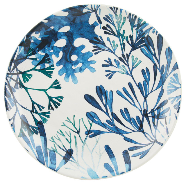 Elevate everyday meals with the Coral Ceramic Dinner Plate, designed in a crisp white hue with a bold coral blue pattern. Ideal for serving entrees, salads or hearty dishes, it blends clean design with lasting durability. A versatile addition to any table, it suits both casual dining and refined gatherings with ease. Measures approximately 10.5 in round.