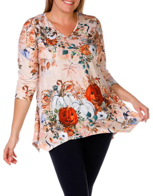 Celebrate the season in style with the Womens 3/4 Sleeve Embellished Pumpkin Harvest V-Neck Top. Made from a soft and stretchy blend of 95% polyester and 5% spandex, this top offers all day comfort with a flattering fit. The 3/4 sleeves and V-neckline add a touch of elegance, while the embellished pumpkin design brings warmth and charm to your autumn wardrobe. Perfect for family gatherings, pumpkin patch outings, or simply savoring the cozy moments of fall.