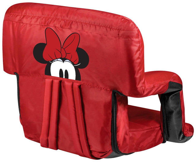 The Ventura Seat by Oniva is a portable recreational recliner with armrests and adjustable backpack straps you can take just about anywhere. Seat features Minnie Mouse design, six backrest positions, and integrated armrests. Measures 20''L x 32''W x 32''H. Weighs 7.5 lbs.