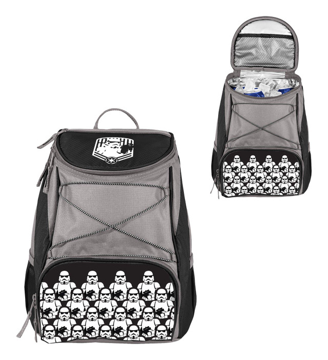 The PTX Backpack Cooler with Star Wars Storm Trooper features a fully-insulated interior liner that is also water-resistant, you can use it as a food and beverage tote or as an all-around activity tote. Backpack also features golf cart harness, five separate pockets, and front-mounted stretch cord. 20 can capacity. Measures: 11'' x 7'' x 12.5''.