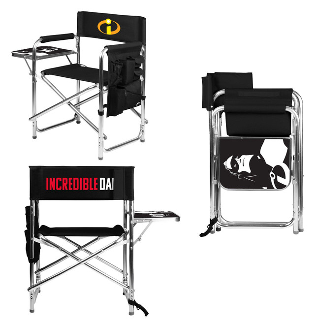 The Disney The Incredibles Mr. Incredible Folding Sports Chair by Picnic Time features a sturdy aluminum frame, adjustable detachable shoulder strap, side pockets, & insulated drink holders. Chair features 19.5'' wide seat and holds up to 300 lbs. Folded measures 19 x 4.5 x 33 inches and expanded measures 19 x 24 x 33. Side table measures 14.5 x 11 inches and holds up to 10 lbs.