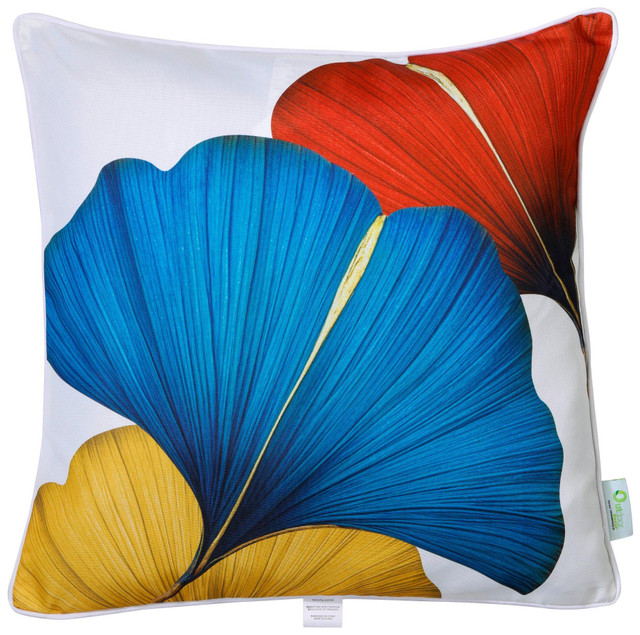 Refresh patio or deck seating with the 20x20 Ambiance Leaf Outdoor Cushion Pillow. Featuring a modern multicolor leaf print, it adds vibrant style and comfort to any outdoor arrangement. Spot clean for best care. Fabrication is 100% polyester. Measures approximately 20 in x 20 in.