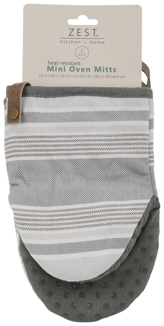 The 2 Pack 5x8 Quilted Stripe Heat Resistant Mini Oven Mitts bring both function and charm to your kitchen. Designed with a quilted stripe pattern on woven cotton, each mitt features a slip pocket for easy handling and snap loops for hanging. Compact yet protective, theyre perfect for quick grabs and small dishes, adding a stylish touch to everyday cooking.