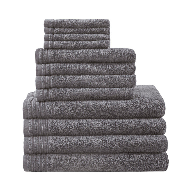 The 510 Design Big Bundle 100% Cotton 12 PC Bath Towel Set provides a simple and easy update to complete your bathroom. This lightweight value towel set is made from 100% cotton for a super soft and natural feel, while the zero twist terry construction allows for the towels to dry quickly. Each towel is finished with an Ultra Fresh anti-microbial treatment for quality health and comfort - providing odor control, inhibiting bacteria buildup, and keeping linen fresher, longer.