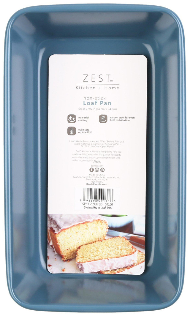 Zest Kitchen + Home produces sophisticated home products and textiles with an international sense of style and quality. This high-quality loaf pan is oven safe up to 450 degrees, features a smooth nonstick coating and is composed of carbon steel for even heat distribution. Measures 5.5in x 9-3/8in.