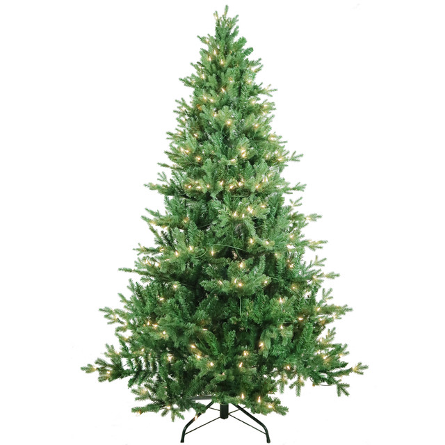 This 7-Foot Pre-Lit Clear Incandescent Jackson Pine Tree from Kurt Adler is the perfect addition to your holiday décor. With 350 clear incandescent lights, half your tree decorating is already done for you! With 2350 tips and 50 inch girth, you can complete the tree with ornaments and a treetop and it will start to feel like Christmas.
