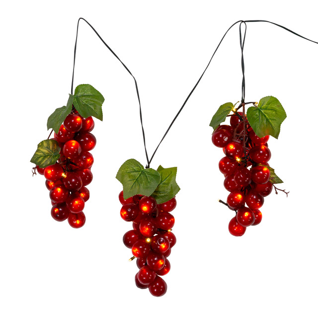 These Kurt Adler 75-Light LED Large Purple Grape Light Set are pretty grape! Featuring three bunches of purple grapes, each grape is illuminated from within by warm white LED lights. Whether its a food tasting, wine tasting or even a simple dinner gathering, this light set will enhance your décor.