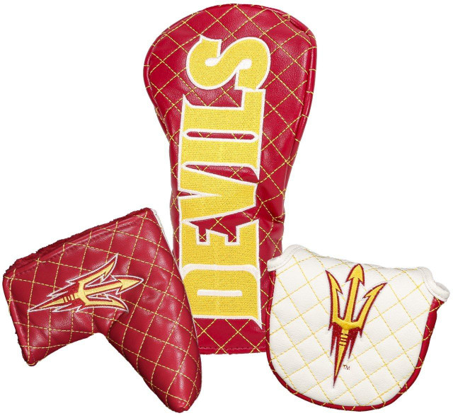 Rep your team with a custom Arizona State Sun Devils Headcover from our highly sought-after NCAA Golf Collection. Our Golf Headcovers are uniquely designed in-house from CMC Designs. Add a touch of personality and enhance your golf game in style. Our headcovers are meticulously crafted using top-quality faux leather with a plush inner lining to protect your investment.