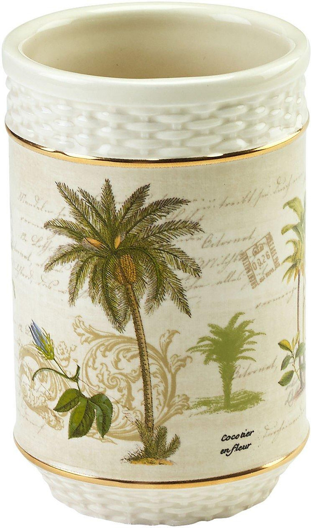 Avanti Colony Palm will add a tropical island vibe to your bathroom with the all over print of palm trees on an ivory background. Tumbler measures: 3'' x 3'' x 5''.