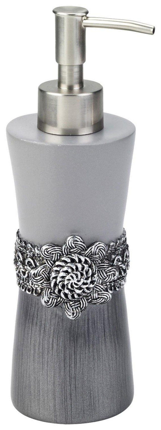 Avanti Granite Braided Medallion Lotion Pump features 2-tone body that is separated by intricately carved beads and a medallion. Measures: 2.59'' x 2.59'' x 8.38''.