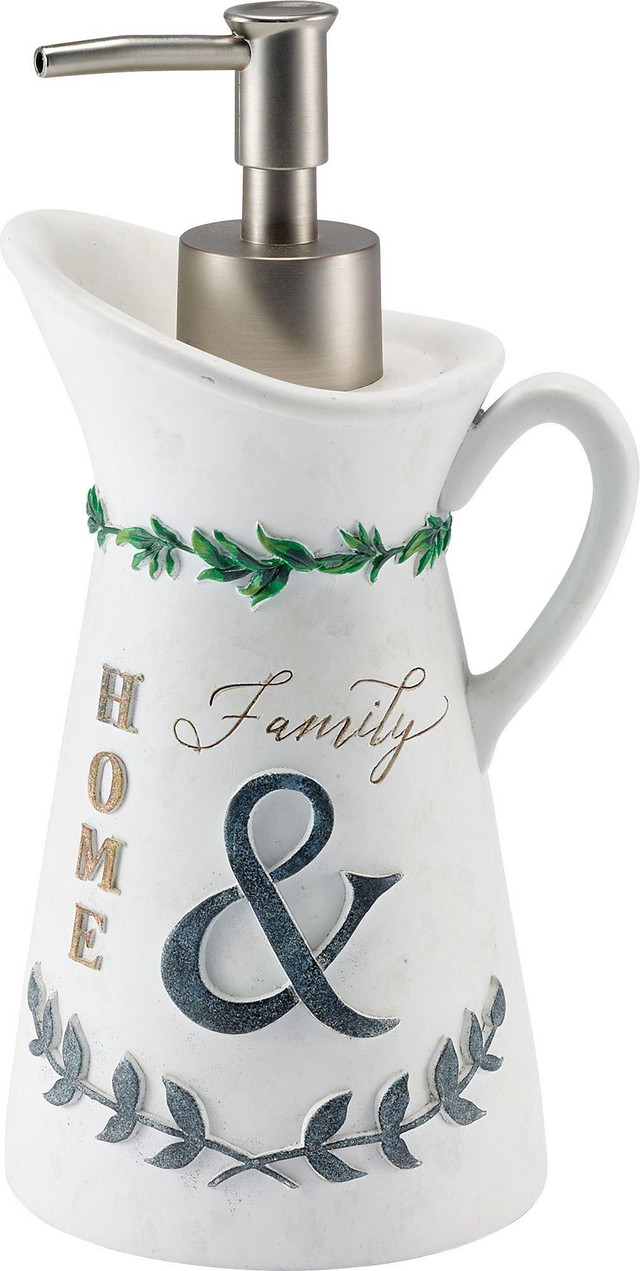 The Avanti Modern Farmhouse Lotion Pump replicates a classic milk pitcher and is adorned with icons, words and phrases to bring one of today's most popular decorating motifs to your home. Crafted in great detail in hand-painted resin. Measures: 3.5'' x 3.5'' x 7.87''.