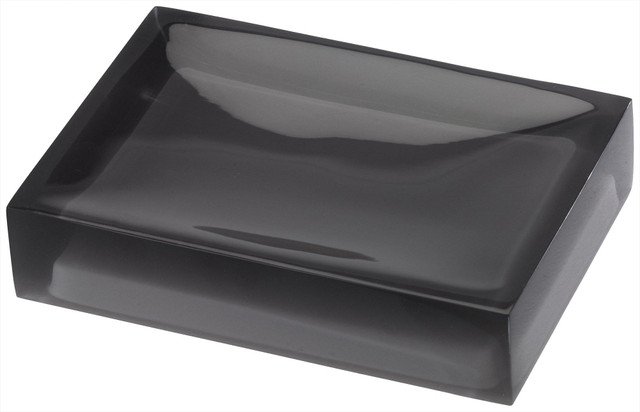 The Avanti Soho Soap Dish features a grey-tinted clear design for a clean, contemporary look. Crafted of durable resin. Measures: 4.9 x 3.2 x 1 inches.