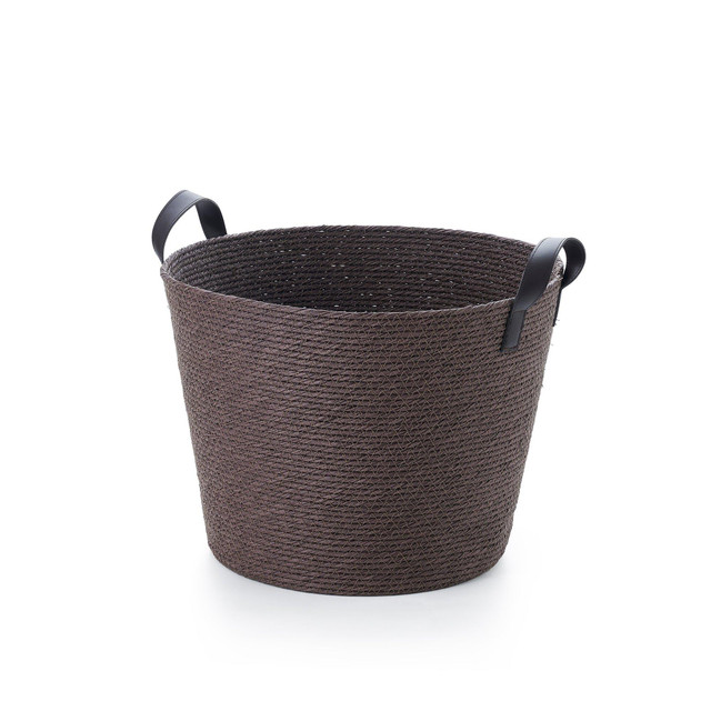 Our stunning twisted faux wicker basket is a perfect combination of traditional craftsmanship and modern design. Crafted with a rich brown finish that beautifully mimics the look and feel of natural wicker, this basket is both stylish and practical.Whether storing your favorite throws, organizing magazines, or using it as a decorative centerpiece, this basket adds a touch of rustic elegance to any space. Large storage bin is 16.5''x12''. Holds up to 50 lbs.