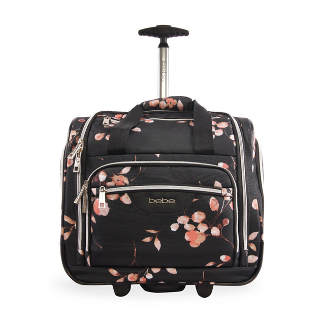 Travel in style with the Bebe Valentina under the seat luggage. Compact in size, The luggage provides useful storage space, a telescoping handle and smooth rolling wheels. This carry-on bag is designed to fit underneath most airline seats, so you can access everything you need while flying. Suitcase measures 15 in. x 15 in. x 8.5 in.