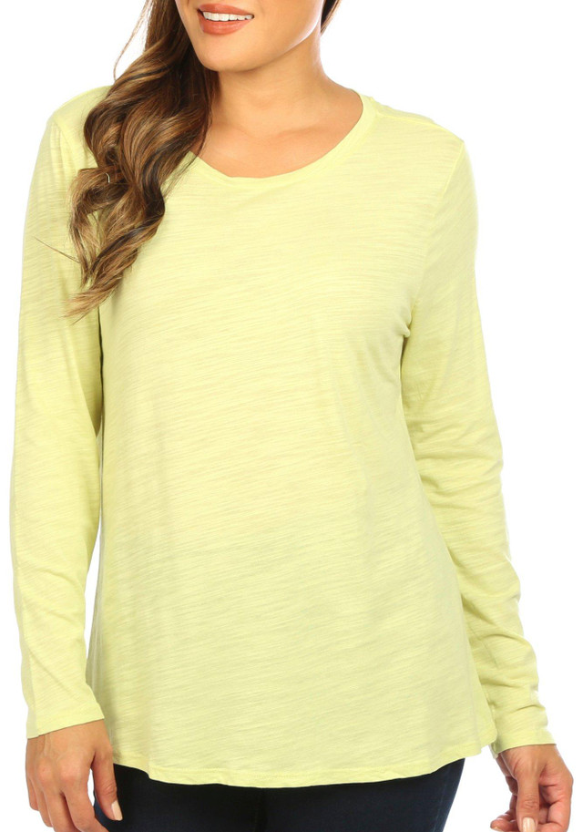Introducing the Womens Long Sleeve Solid Crew Neck Top from Blue Sol, a timeless addition to your wardrobe. Crafted from a soft blend of 60% cotton and 40% modal, this top offers exceptional comfort and breathability. The classic round neckline and solid color make it a versatile piece, perfect for layering or wearing on its own. Ideal for any occasion, this top combines simplicity and elegance effortlessly.