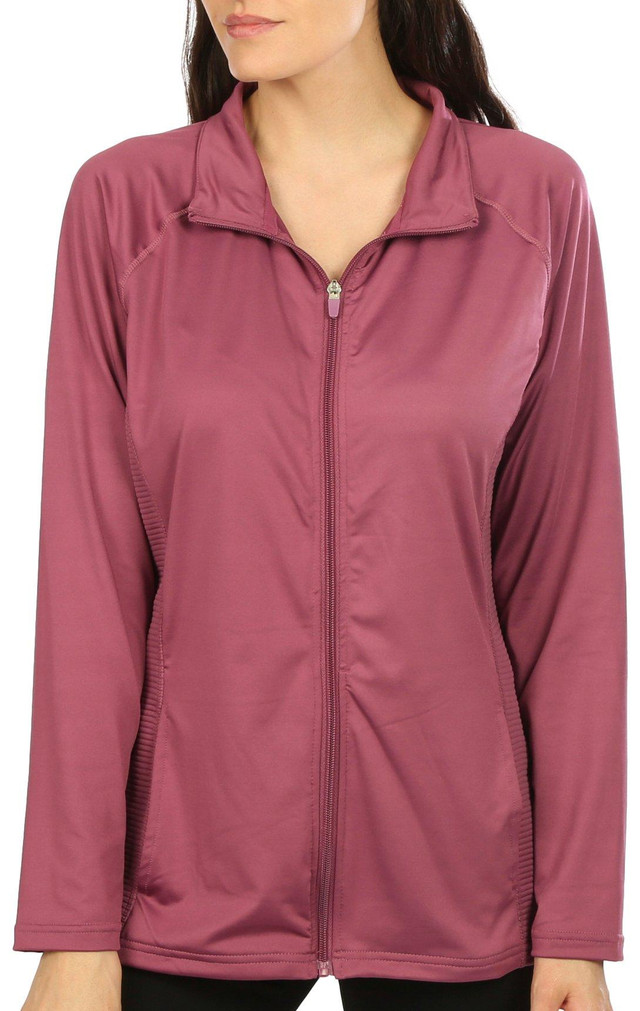 Elevate your style with this Long Sleeve Jacket, designed for both comfort and elegance. Featuring a sleek zip-up front, this jacket is perfect for layering in any season. The ribbed side panels add a touch of sophistication while ensuring a flattering fit. With two front pockets, you can keep your essentials close at hand. Whether youre heading to the office or out for a casual stroll, this jacket is your go-to for effortless chic. Fabrication 88% polyester, 12% spandex.