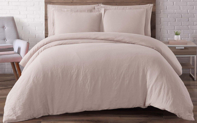Make your bed that cozy little nest with the comfortable linen bedding collection. Linen is the natural moisture wicking fiber. These fibers are tube shaped which moves moisture away from your body so you stay dry. These duvet sets cover your synthetic or natural filled comforter purchased separately and provide a machine washable and natural fiber cover. Set includes one duvet and two pillow shams.