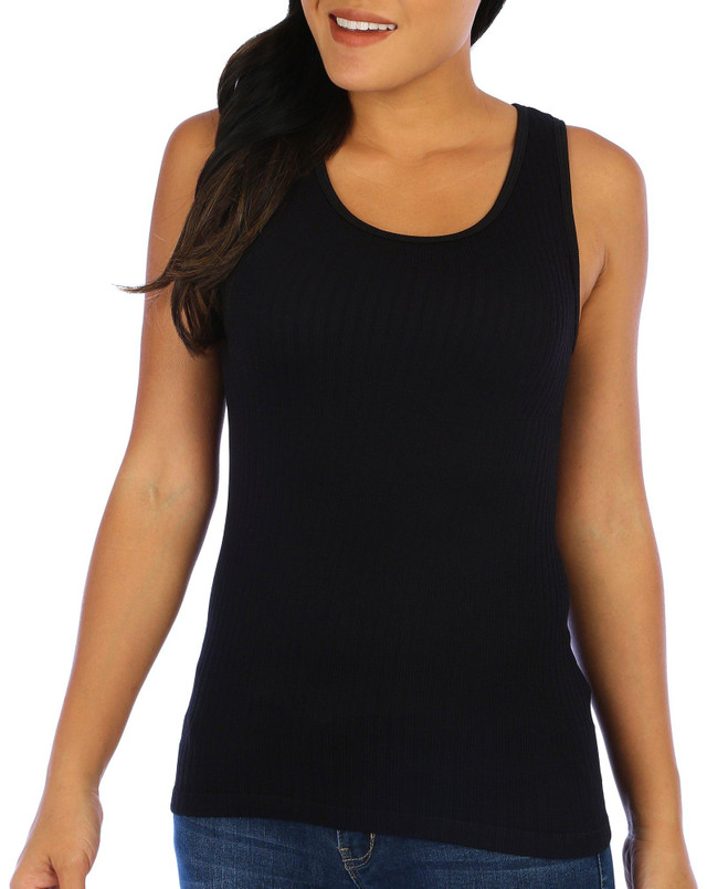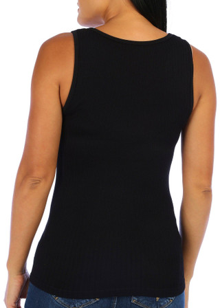 This Bunulu tank top features a solid color design on lightweight ribbed fabric, a scoop neckline, and classic styling. The top length measures approximately 26 in. Fabrication is 96% nylon and 6% spandex.