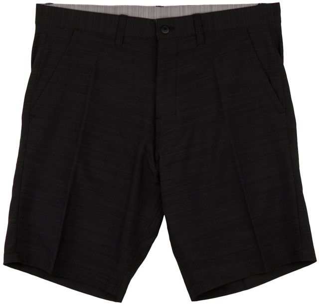 Burnside offers on-trend styles for everyday wear. These hybrid series shorts feature a textured stripe design on fade-resistant lightweight woven stretch fabric, two front pockets, one cargo slip pocket for extra storage, two button thru back pockets with interior bungee cord, UV protection, and quick-dry and stretch technology. Inseam measures approximately 10 in. Outseam measures approximately 20 inches. Fabrication 90% recycled polyester, 10% spandex.