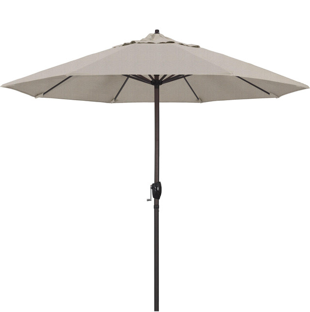 This large 9 foot umbrella offers the residential owner a beautiful market design. The aluminum frame has a simple crank to open and auto tilt design. Umbrella features aluminum pole and 8 heavy duty aluminum ribs. Olefin fabric features synthetic fibers & 40+ UPF. Base to top measures: 102''.