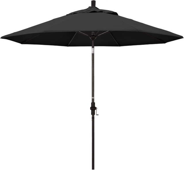 This Sun Master Umbrella features 1.5'' diameter aluminum bronze pole, crack-resistant fiberglass ribs, advanced collar tilt design, and user-friendly crank to open features. Pacifica fabric top is solution dyed canvas polyester fabric that is soft to the touch and SPF 40. Base to top measures: 101''.