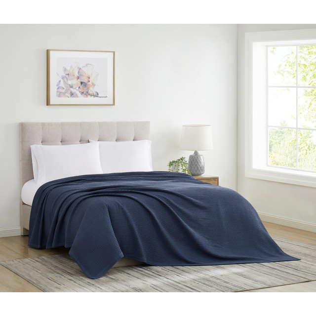 Customize your bedroom décor with this stylish waffle woven blanket by Cannon. This blanket features a midweight blend of cotton fibers that allows for breathable fabric and perfect temperature regulation. Use this blanket on its own in the warmer months and when it starts to get chilly out, add it as a top layer to your favorite Cannon comforter or quilt. Measures: Twin/Twin XL - 68 x 90; Full/Queen - 90 x 90; King - 108 x 90.