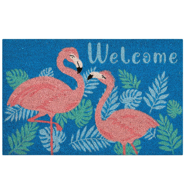 Welcome guests in style with this 18x28 Welcome Flamingo coir door mat from Casabella. Featuring a charming and trendy flamingo graphic design, this mat adds a coastal touch to your entryway. Made from durable coir, it effectively traps dirt and moisture, keeping your home clean. Perfect for beach lovers and anyone looking to add a bit of seaside charm to their doorstep, this mat combines functionality with aesthetic appeal.
