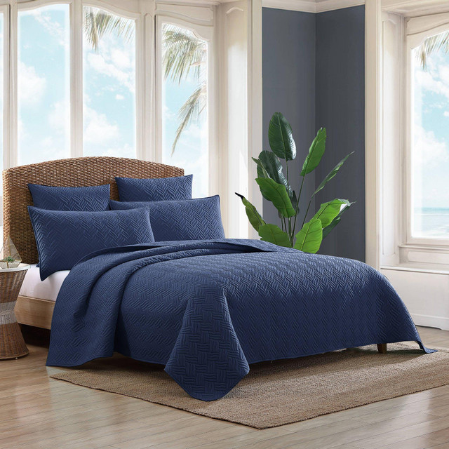 Discover your new favorites to liven up your home with Coastal Home! This vibrant quilt features a simple solid-color design with wave-stitch details. Shams not included. Fill and face fabrication is 100% polyester.