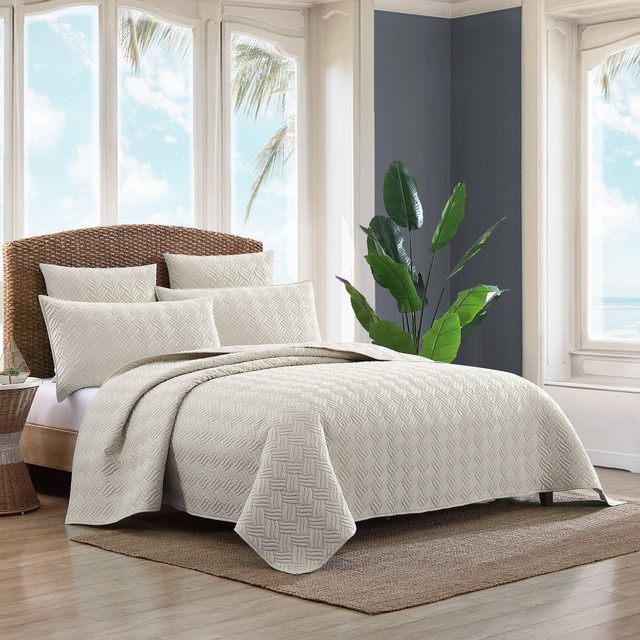 Discover your new favorites to liven up your home with Coastal Home! This vibrant quilt features a simple solid-color design with wave-stitch details. Shams not included. Fill and face fabrication is 100% polyester.