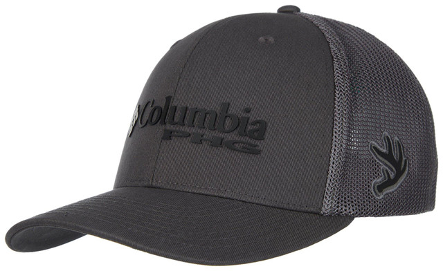 This Columbia Logo Applique Mesh Stretch Fit Baseball Cap features classic ball-cap styling with a logo applique on the front solid color fabric, mesh rear panels, a high crown, and a FlexFit stretch fit. Fabrication is cotton, polyester, polyurethane.