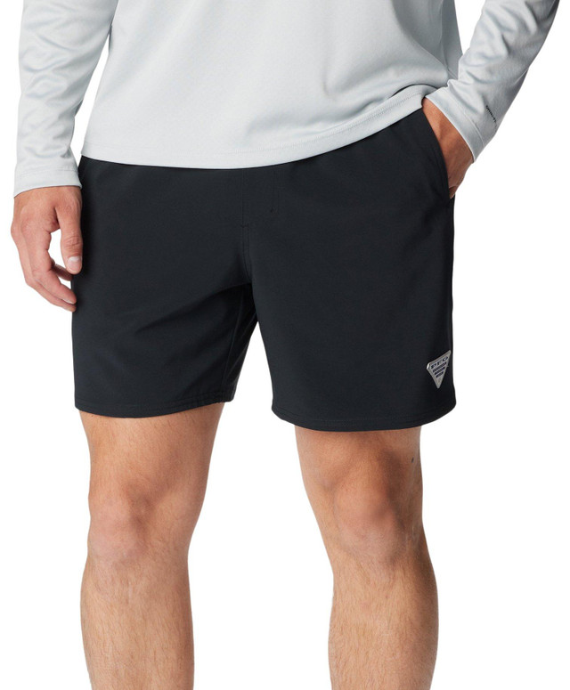 Keep each adventure going strong with these terminal roamer shorts by Columbia. These shorts are versatile enough for fishing, hiking, and even swimming and provide lightweight woven stretch fabric, elastic waistband with adjustable interior drawcord, hand pockets, security zipper back pocket, Omni-Shade, Omni-Shield, UPF 50 sun protection, and an easily matched solid design. Fabrication 91% polyester, 9% elastane stretch woven.