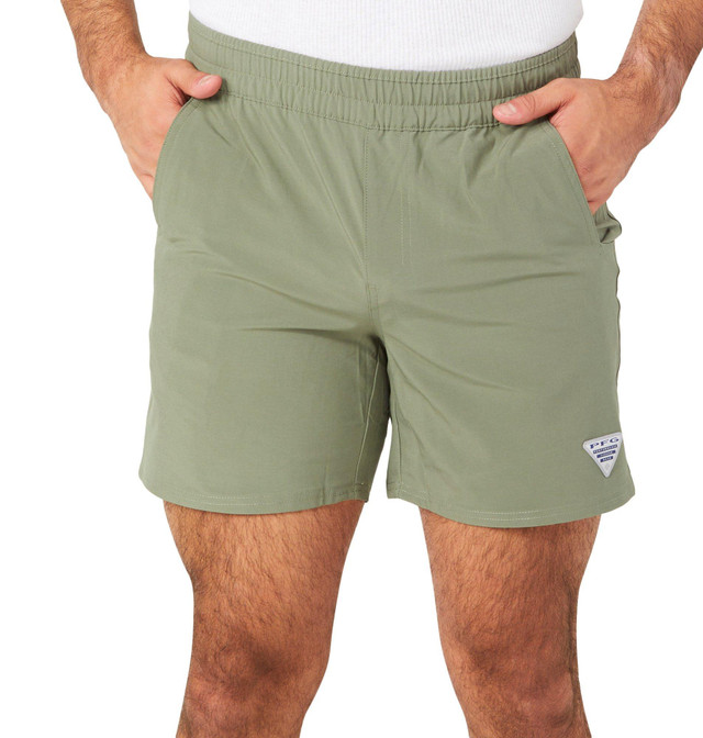 Keep each adventure going strong with these terminal roamer shorts by Columbia. These shorts are versatile enough for fishing, hiking, and even swimming and provide lightweight woven stretch fabric, elastic waistband with adjustable interior drawcord, hand pockets, security zipper back pocket, Omni-Shade, Omni-Shield, UPF 50 sun protection, and an easily matched solid design. Fabrication 91% polyester, 9% elastane stretch woven.