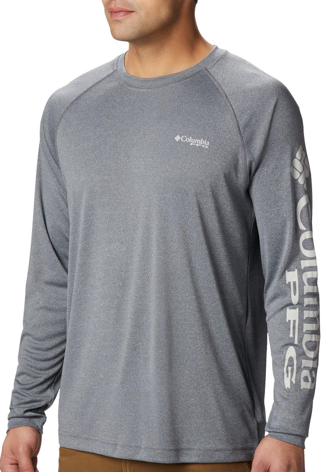Keep each adventure going strong with this PFG Terminal Tackle T-shirt by Columbia. Stay safe & cool while out on the boat in this stylish long sleeve tee, featuring smooth and lightweight fabric, Omni-Shade UPF 50 sun protection, Omni-Wick moisture-wicking technology, quick-dry properties, a comfortable crew neckline, raglan seams, a Columbia PFG logo on the chest & down the left arm, and a versatile solid design that easily matches your favorite outdoor pants and shorts.