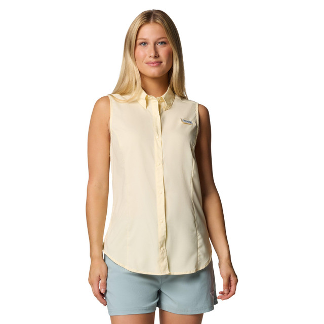 Enjoy your outdoors passion with comfort & style with the PFG Tamiami Sleeveless Shirt. It features Omni-Wick and Omni-Shade technologies with UPF 40 protection, a mesh-lined back venting panel, and a solid color design that allows for effortless matching. Measures approximately 25 in.