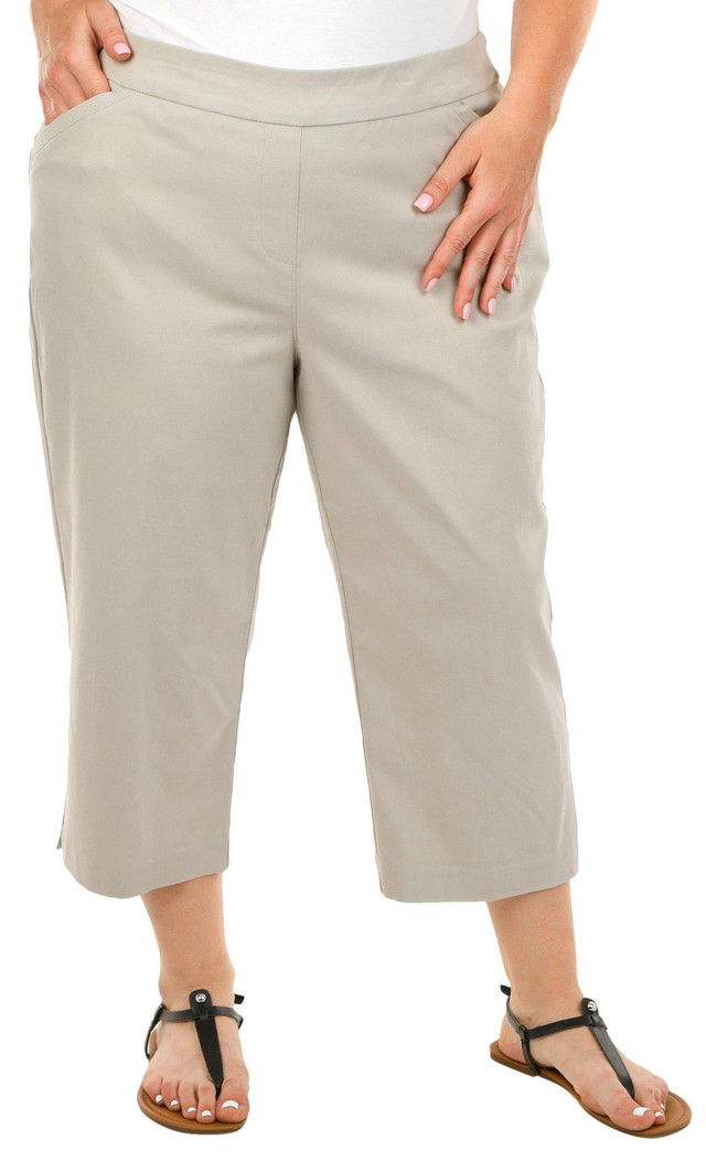 Coral Bay offers every day, classic, casual collections for your relaxed lifestyle. These capris feature a solid color design, two front pockets, two faux back pockets, and a wide elastic waistband with slimming tummy panel. Inseam is approximately 21in. length. Outseam measures approximately 33in. length. Fabrication 75% rayon, 22% nylon, 3% spandex.