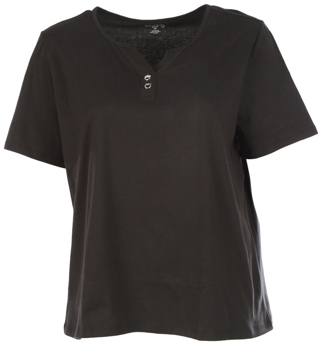 Experience effortless style and comfort with the 100% Cotton Solid V-Neckline Clasp Short Sleeve Top. Measuring approximately 26 inches in length, this versatile piece offers a flattering fit that suits any wardrobe. The elegant V-neckline, paired with a subtle clasp detail, adds a touch of sophistication, making it perfect for both casual and semi-formal occasions.
