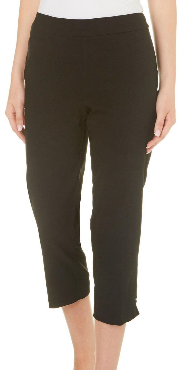 Counterparts offers a stylish look and a comfortable fit. These capris feature a solid color design, a flat front, and a side splits with button accents. Inseam is approximately 20 inches on a size 8P.