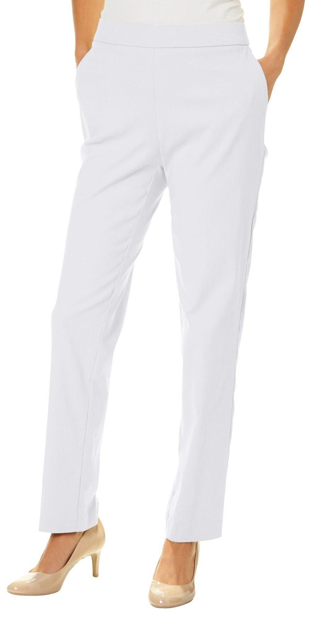 Counterparts offers a stylish look and a comfortable fit. These pants feature a solid color design on lightweight stretch fabric, an elastic waistband, a slimming tummy control panel, two front pockets, and pull-on styling. The inseam measures approximately 30 in. Fabrication 75% rayon, 22% nylon, 3% spandex.