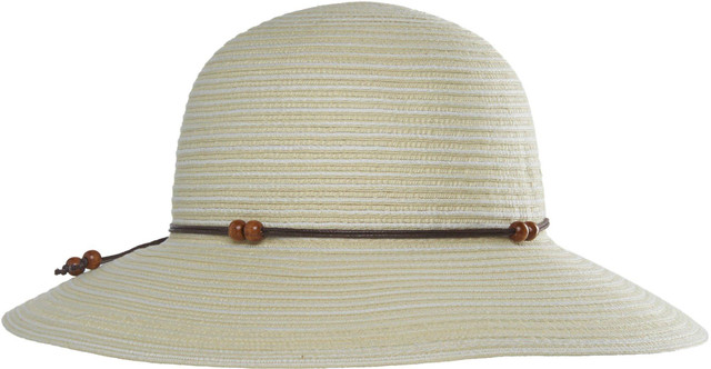 This Wanderlust sun hat features a breathable woven straw construction, a crushable and packable easy-travel design, a narrow vegan leather hatband and chinstrap, and a wide 4.5' inch brim to protect you from the sun. UPF 40+ sun protection.